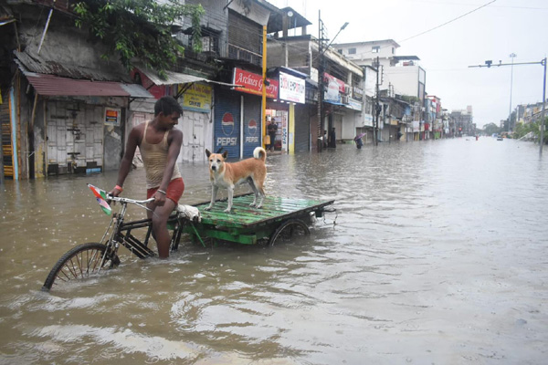 Agartala, Aug 21: A cart puller’s act of compassion in adverse situation has won millions of hearts. The cart puller, navigating the water-logged streets in Agartala, became an unsung hero when he selflessly rescued a stranded dog, embodying the spirit of humanity in the face of adversity.