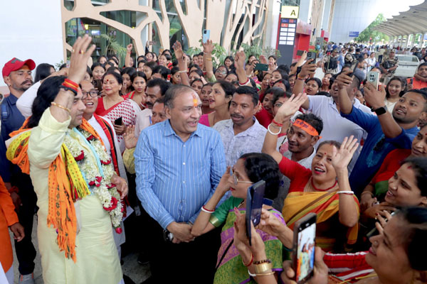 On his arrival in Tripura on Monday, Devakinandan Thakur Maharaj was given a warm reception at Maharaja Bir Bikram Airport, Agartala. Soon after arriving in Agartala, he paid courtesy visits to the Governor and Minister for Youth Affairs and Sports Tinku Roy. He also had a courtesy meeting with Minister for Tourism Sushanta Chowdhury.