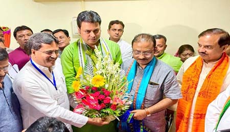 The Chief Minister along with BJP Tripura president Rajib Bhattacharjee among other party leaders congratulated Deb for being elected as the MP Rajya Sabha.