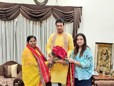Meanwhile, Deb along with his wife Niti Vidrohi Deb met Pratima Bhowmik, the MP from West Tripura parliamentary constituency who is now the Union Minister of State for Social Justice and Empowerment. The Chief Minister congratulated Bhowmik for her new assignment.