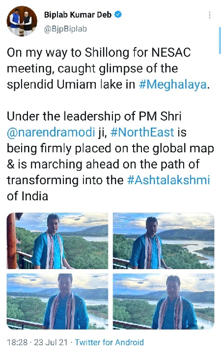 Meanwhile, on his way to Shillong, the Chief Minister in a tweet has shared some beautiful pictures of Umiam lake in Meghalaya.