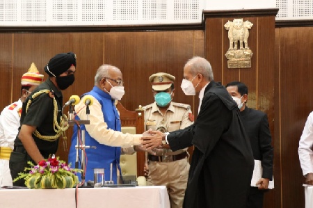 The new Governor was administered the oath of office by Justice A.K. Kureshi, the Chief Justice of the High Court of Tripura at Durbal Hall of Old Raj Bhavan, Agartala.