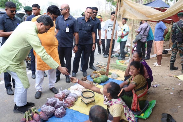 Agartala, Mar 25: In a heart-warming gesture, Tripura Chief Minister Dr. Manik Saha paused his convoy to purchase vegetables at Jeolcherra in Atharomura hill range while returning from Dhalai district after attending the BJP's massive nomination rally on Wednesday.